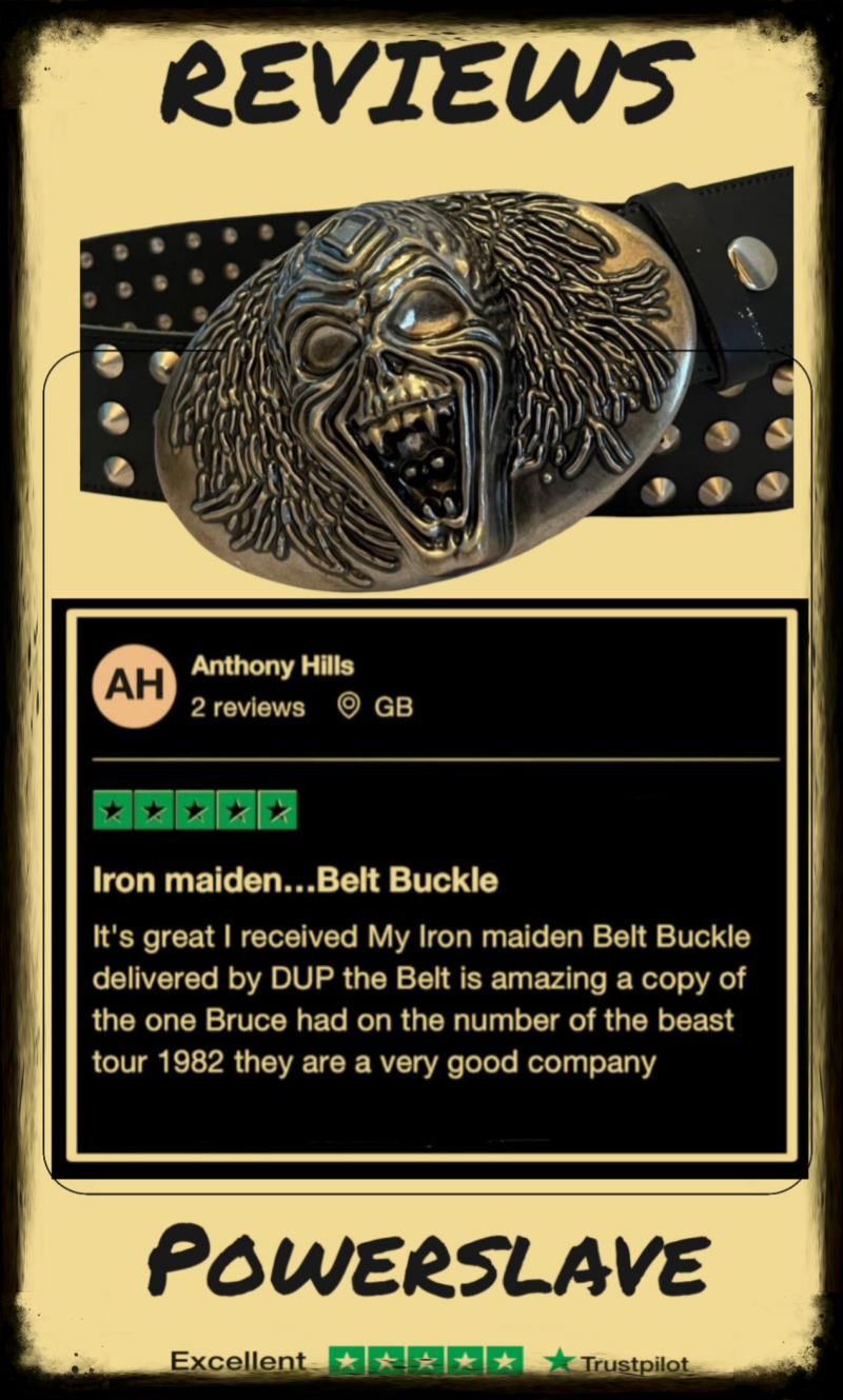 Purchased the Bruce Dickinson belt buckle, serious quality and workman ship ,well worth the price.
